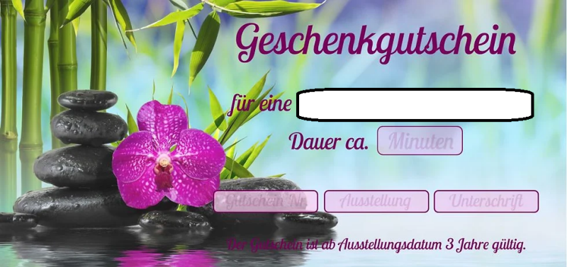 Unsere Geschenkgutscheine sind immer eine willkommene Überraschung. Sie sind für alle Anwendungen bei uns erhältlich.